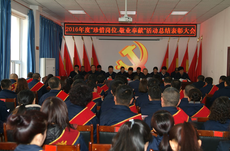 2月15日上午9時(shí),自來水公司2016年度“珍惜崗位、敬業(yè)奉獻(xiàn)”活動(dòng)總結(jié)表彰大會(huì)在高唱《國(guó)歌》聲中隆重開幕。先進(jìn)單位、先進(jìn)集體、先進(jìn)班組代表和39名先進(jìn)個(gè)人以及公司基層副職以上干部參加了會(huì)議。住建委黨委委員、副主任張庭政,政治部主任張澤起到會(huì)祝賀并講話。會(huì)議由公司黨委書記張旭濱主持。