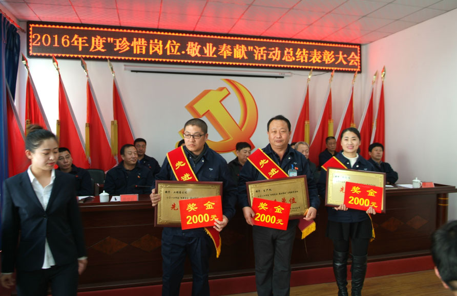 隨后,常務(wù)副經(jīng)理徐學(xué)良宣讀了《關(guān)于表彰2016年度“珍惜崗位、敬業(yè)奉獻(xiàn)”主題教育活動(dòng)先進(jìn)集體和先進(jìn)個(gè)人的決定》并頒獎(jiǎng)。