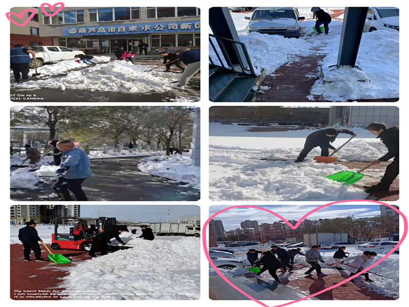 早晨寒冷的飛雪還沒有停,道路不通、公交停運(yùn),許多同志步行很長時(shí)間來到工作崗位,第一件事就是清除公司院內(nèi)外、水廠周圍、營業(yè)大廳門前等道路積雪。大家不顧天氣寒冷,掃積雪、鏟冰層、清雜物,干得熱火朝天。黨員干部率先垂范,以實(shí)際行動(dòng)踐行“我為群眾辦實(shí)事”的初心使命,展示出黨員干部團(tuán)結(jié)協(xié)作的良好精神風(fēng)貌。風(fēng)雪雖大,卻敵不過眾志成城。公司干部職工齊心協(xié)力,經(jīng)過幾小時(shí)的共同奮戰(zhàn),及時(shí)保證了公司院內(nèi)外、各廠區(qū)、營業(yè)大廳道路的安全暢通,營造了和諧、友愛的社會(huì)環(huán)境,展現(xiàn)了員工良好的集體責(zé)任感和團(tuán)隊(duì)協(xié)作精神。