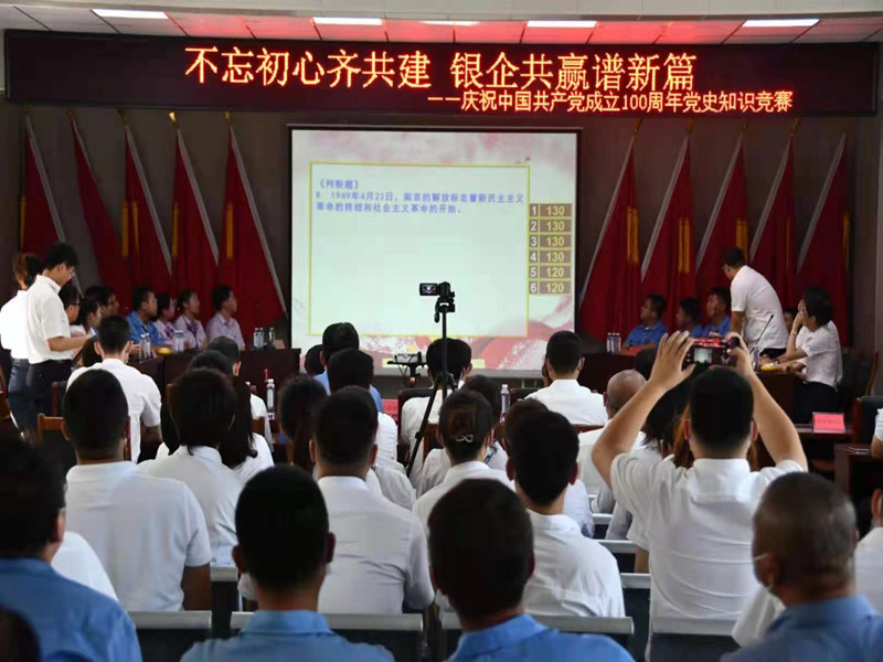 百年征程波瀾壯闊,百年初心歷久彌堅。為深入推進黨史學習教育走心走深走實,以實際行動踐行初心使命,營造學黨史、知黨情、跟黨走的濃厚氛圍。7月26日,葫蘆島市自來水公司攜手中國農業(yè)銀行、中國銀行、中機青山公司、平山公司、烏金塘水庫共同舉辦:“不忘初心齊共建 銀企共贏譜新篇”慶祝中國共產黨成立100周年黨史知識競賽活動,旨在通過學習競賽形式普及黨史知識,更好的促進銀行與供水企業(yè)之間的交流與合作,為中國共產黨百年華誕獻禮。市國資委副主任、黨委委員單亞光,黨辦主任李海峰應邀出席會議,各參賽單位主要領導參加會議。