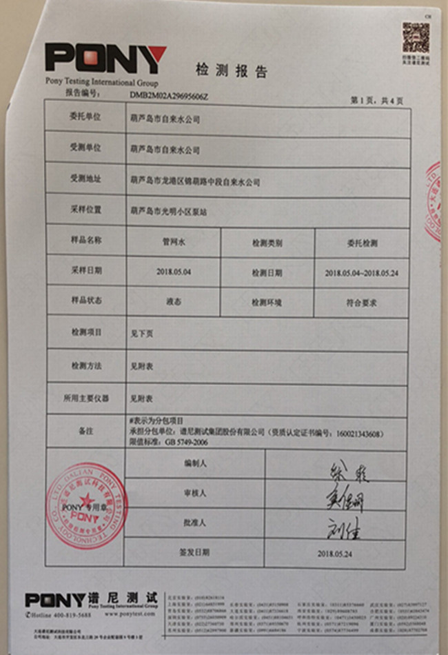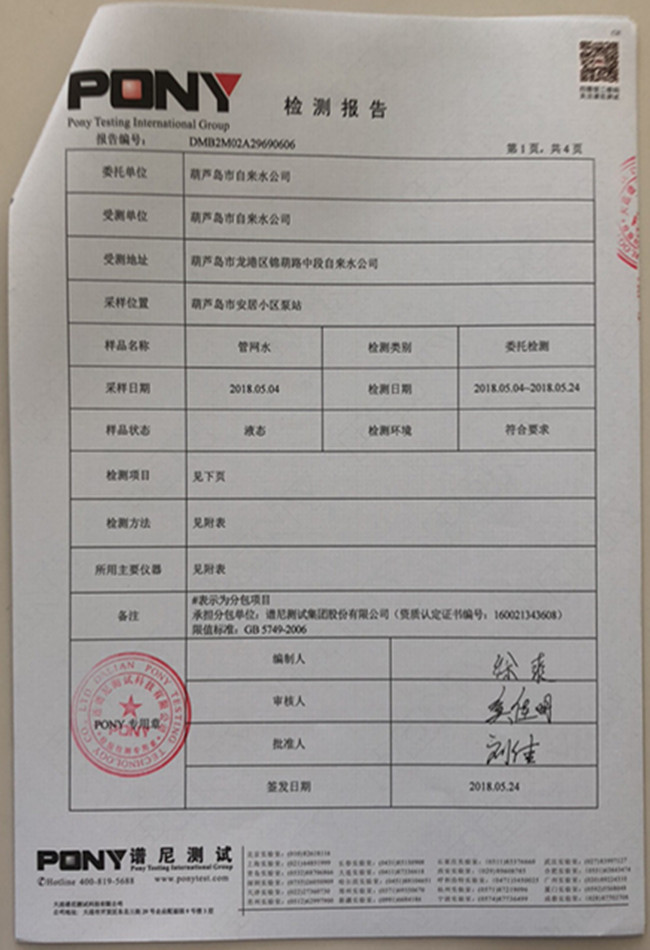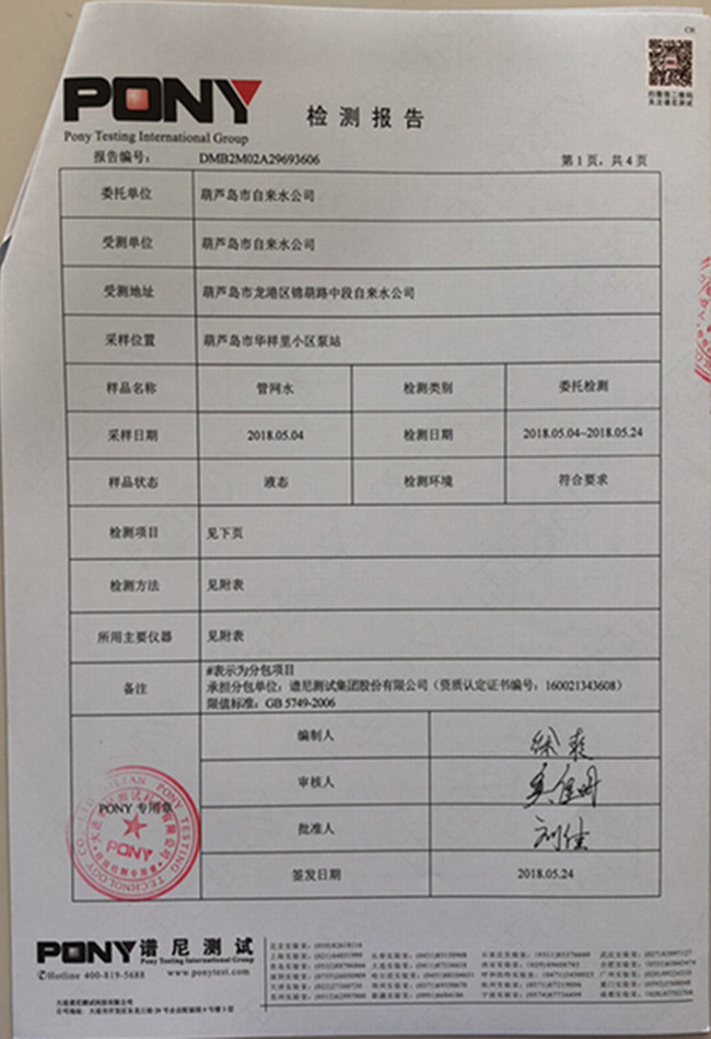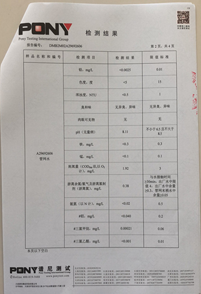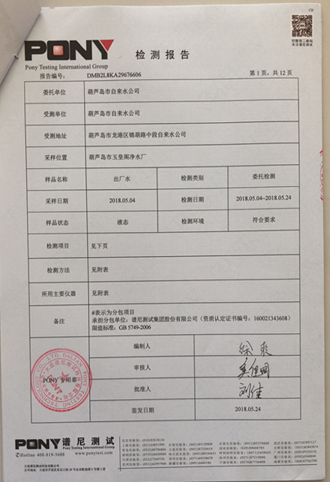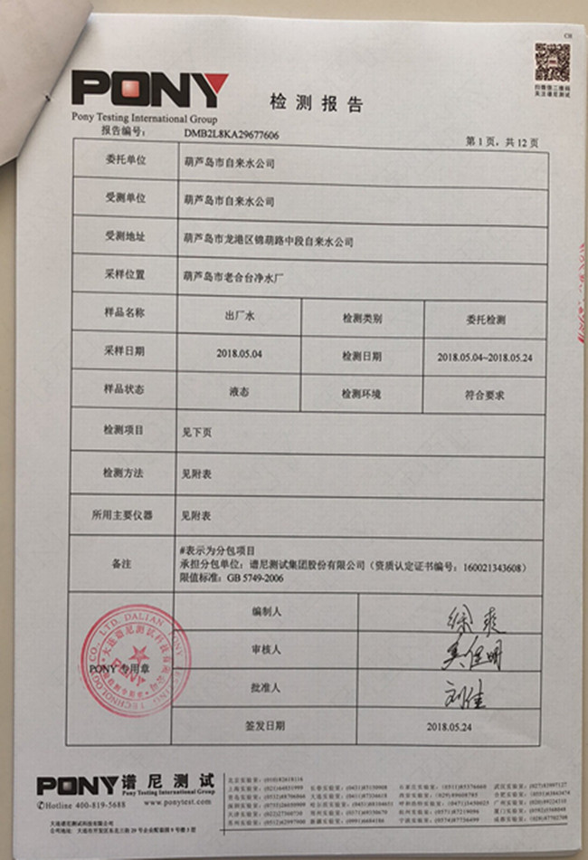 老合臺(tái)凈水廠檢測(cè)報(bào)告: