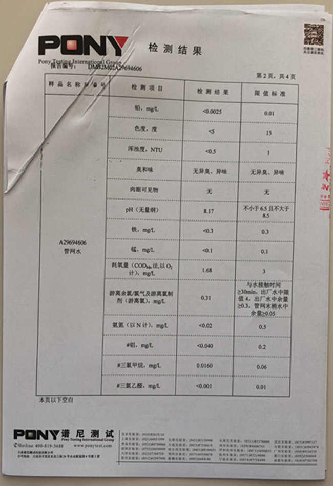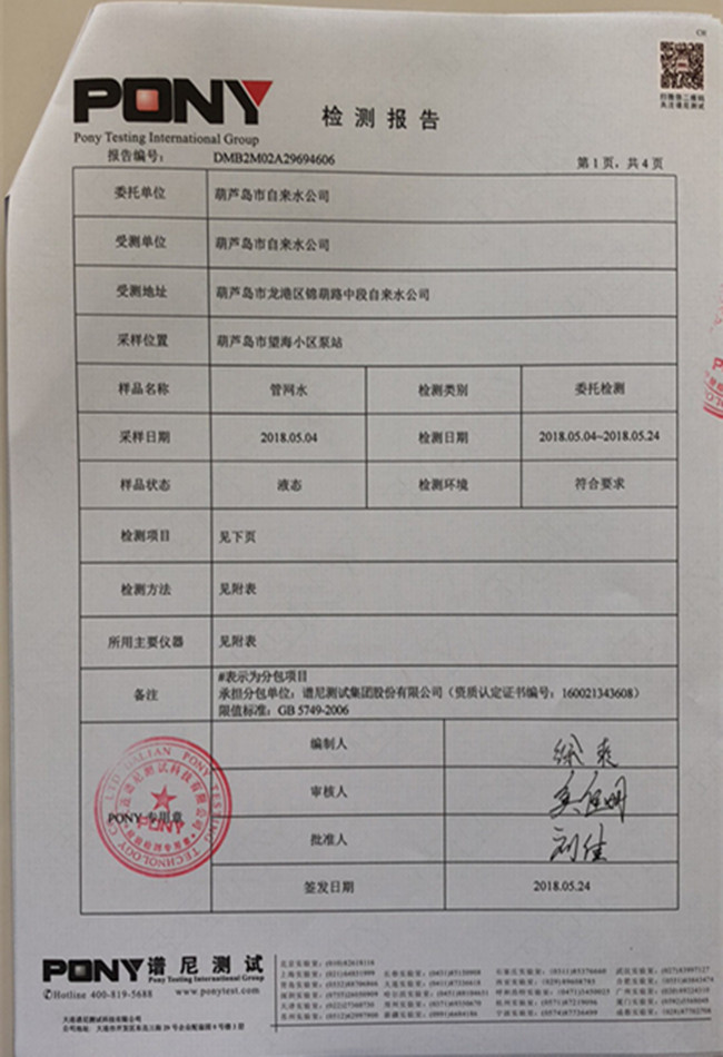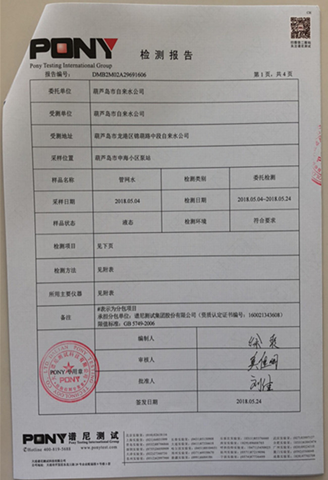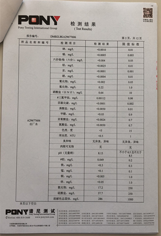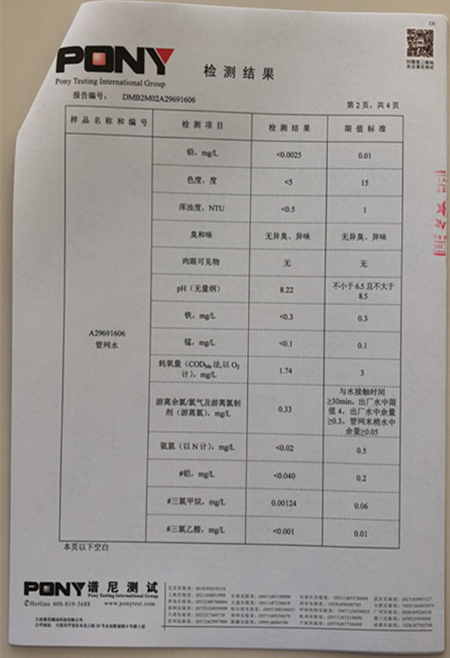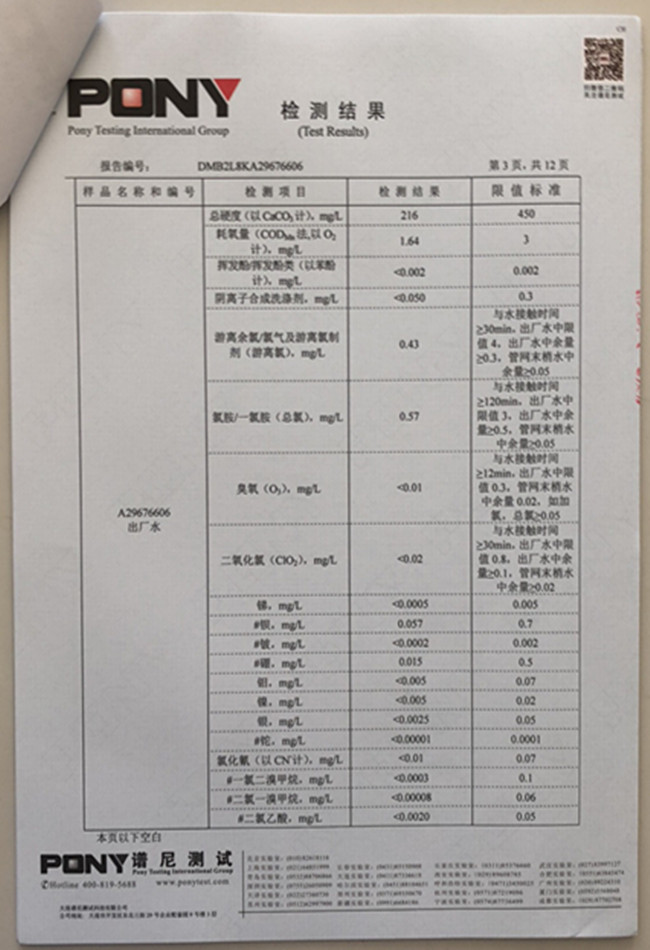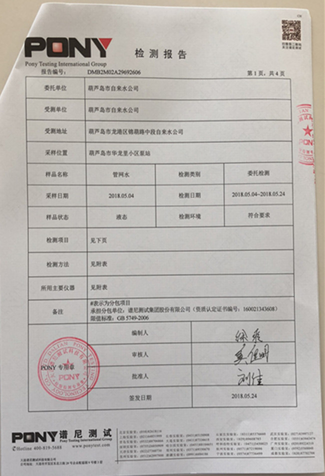 老合臺(tái)凈水廠檢測(cè)報(bào)告: