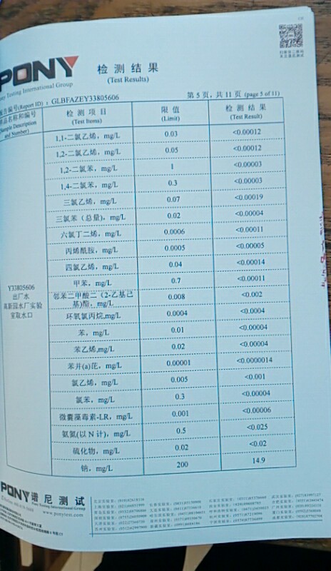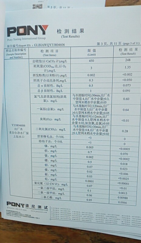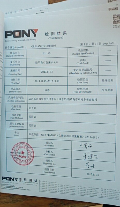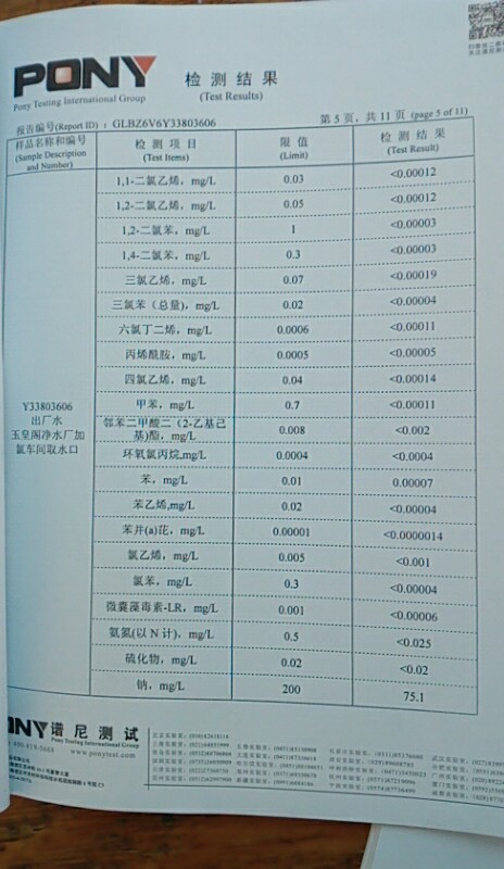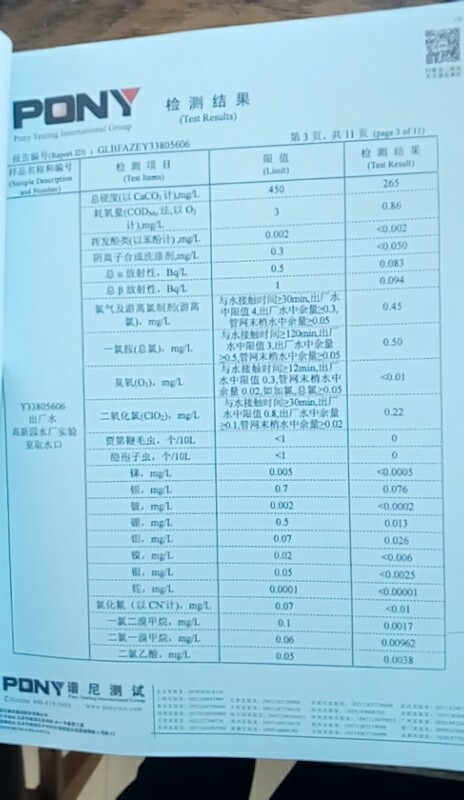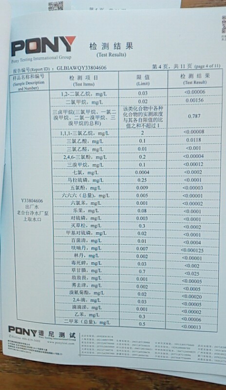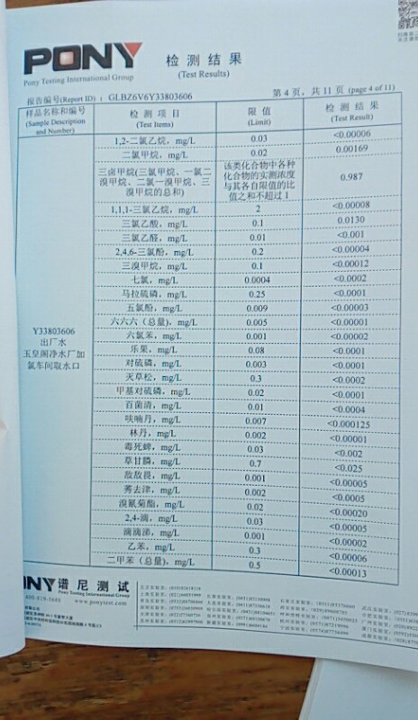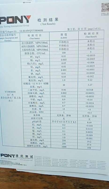 水質(zhì)報告