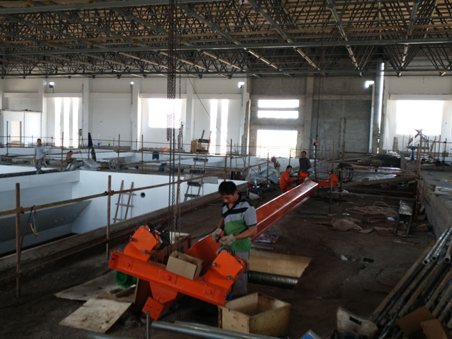 目前,該工程土建部分完成95%;廠區(qū)道路及綜合管網(wǎng)部分完成52%;工藝管線及設(shè)備安裝部分完成45%。水質(zhì)檢測(cè)中心土建部分完成75%。配水干管工程,征地和設(shè)計(jì)正在同時(shí)進(jìn)行中,預(yù)計(jì)10月末建成供水。水廠建成后可實(shí)現(xiàn)供水10萬(wàn)噸/日,將大大改善老城區(qū)、船舶工業(yè)園區(qū)、龍港區(qū)的供水現(xiàn)狀,使供水管網(wǎng)輻射至打漁山工業(yè)園區(qū),有效改善我市供水緊張現(xiàn)狀。