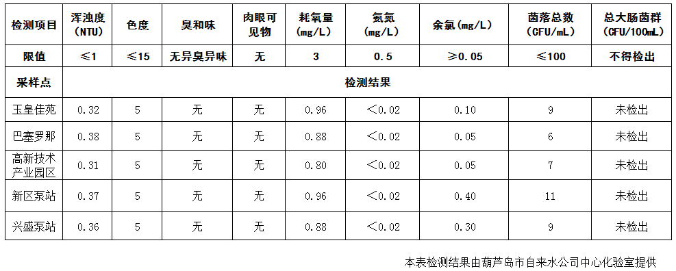 2017年8月9日葫蘆島市城市供水管網(wǎng)水質(zhì)信息