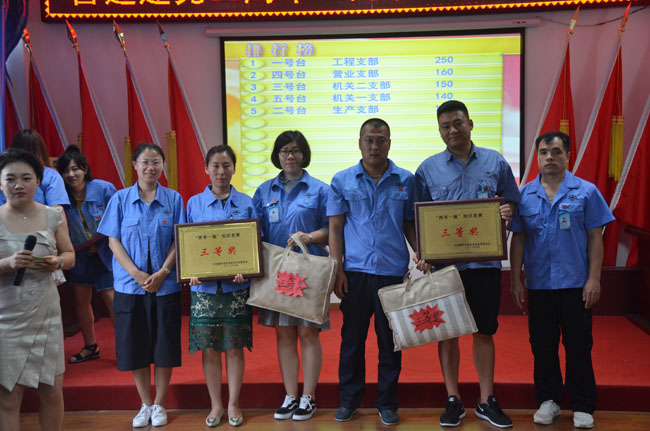 此次競賽內容包括《黨章》、《廉政準則》、《習近平系列重要講話》等知識,公司5個黨支部集體參加比賽,經過緊張激烈而精彩的角逐,工程公司支部獲得一等獎,機關二支部、營業(yè)支部獲得二等獎,機關一支部、生產支部獲得三等獎。