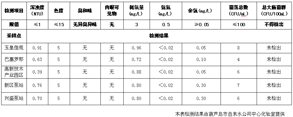 2017年1月18日葫蘆島市城市供水管網(wǎng)水質(zhì)信息
