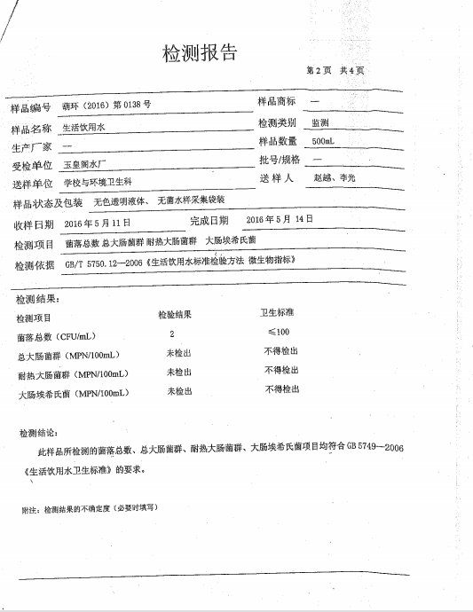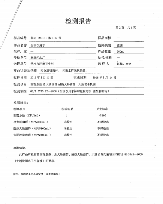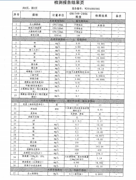水質(zhì)報(bào)告